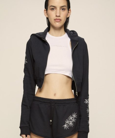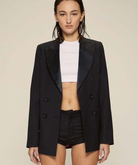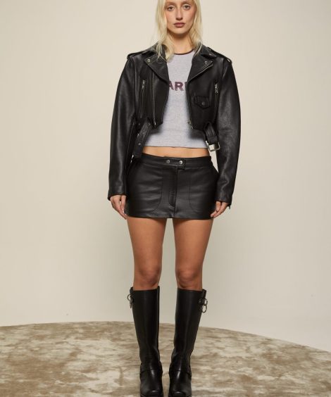 Bomber oversized de cuero 100% vacuno y puños de algodon. Con recortes en manga y espalda. Forreria de jersey de algodon. Chapa metalica de marca en espalda.