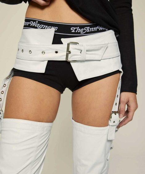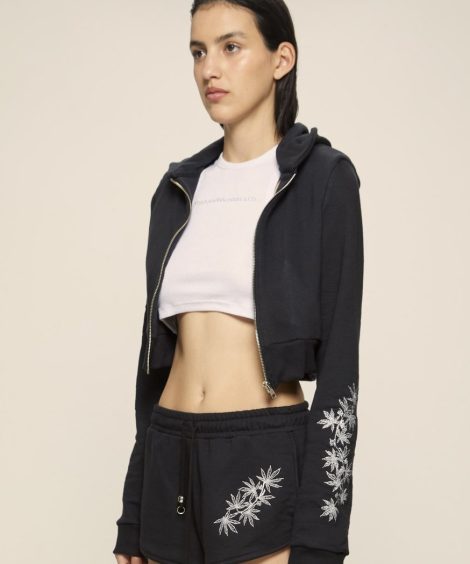 Bomber oversized de cuero 100% vacuno y puños de algodon. Con recortes en manga y espalda. Forreria de jersey de algodon. Chapa metalica de marca en espalda.